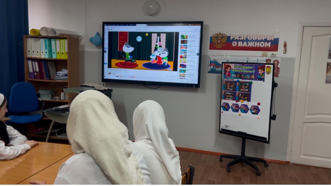 Сразу после торжественной части ребята отправились на тематический час «Разговоры о важном». Сегодняшняя тема — «Как создаются мультфильмы» — вызвала настоящий восторг! Дети узнали, что анимация — это не только магия, но и сложный труд художников и программистов. 🎬🎨